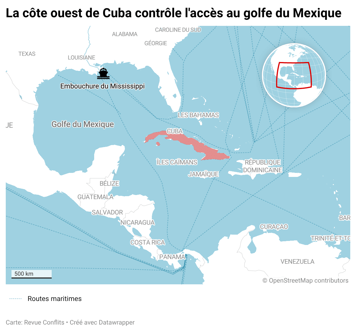En outre, d’un point de vue stratégique, la côte ouest de Cuba peut jouer le rôle d’un verrou pour le golfe du Mexique, rebaptisé golfe d’Amérique par Donald Trump en janvier 2025. En effet, il communique avec la mer des Caraïbes par le canal du Yucatán et avec l’océan Atlantique par le détroit de Floride. Ces deux détroits font environ 190 km de large, soit bien moins que la portée des missiles antinavires actuels. Or, le golfe du Mexique est le débouché naturel de la vallée du Mississippi, véritable colonne vertébrale logistique des États-Unis.