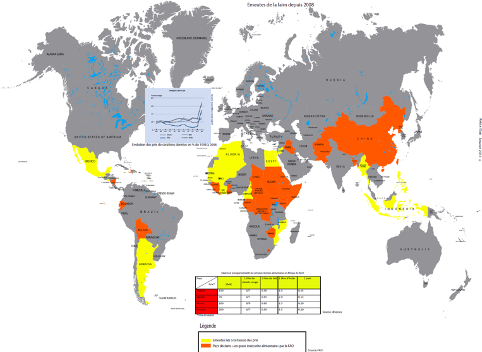 Or, dans une économie mondialisée, les soubresauts et les mises sous tension des productions agricoles entraînent des répercussions sur les marchés dont les conséquences sont planétaires. Le début des années 2000 a vu le retour des émeutes frumentaires. En 2007-2008, les émeutes de la faim frappèrent l’Asie, l’Afrique et l’Amérique du Sud. Une mauvaise récolte, une campagne de blé insuffisante peuvent entraîner des troubles sociaux globalisés. Comme sous l’Ancien régime, une pénurie de matières premières agricoles entraîne des phases d’inflation qui condamnent les populations pauvres à la faim.