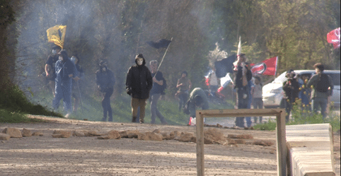 En troisième lieu, la violence des groupes éco-activistes a pour objet, précisément, de détruire ce consensus autour de la légitimité de l’État. Cette destruction se place dans l’ordre des représentations symboliques. Elle permet d’acquérir une position d’« infodominance » qui ancre la délégitimation de la force publique dans l’opinion par une esthétisation orchestrée et destinée à fournir les images d’une mêlée entre la force publique et une foule montrée comme pacifique. Même brefs, ces affrontements se refléteront à l’infini sur les écrans grâce aux réseaux sociaux et aux chaînes d’information en continu, fournissant le support illustré du narratif martyrologique érodant la légitimité de l’action de l’État dans l’exposé, toujours plus documenté par les opposants, des « violences policières ». Répété, relayé massivement, le discours sur les « violences policières » conduit à l’assimilation insidieuse de l’État démocratique à une dictature, que prolonge l’accusation de criminalisation des luttes sociales lorsque ces violences aboutissent à des poursuites judiciaires[12]. Parallèlement, une guérilla des prétoires (« lawfare »), permet de soumettre à un feu roulant judiciaire les projets, les personnes morales parties prenantes et l’État.