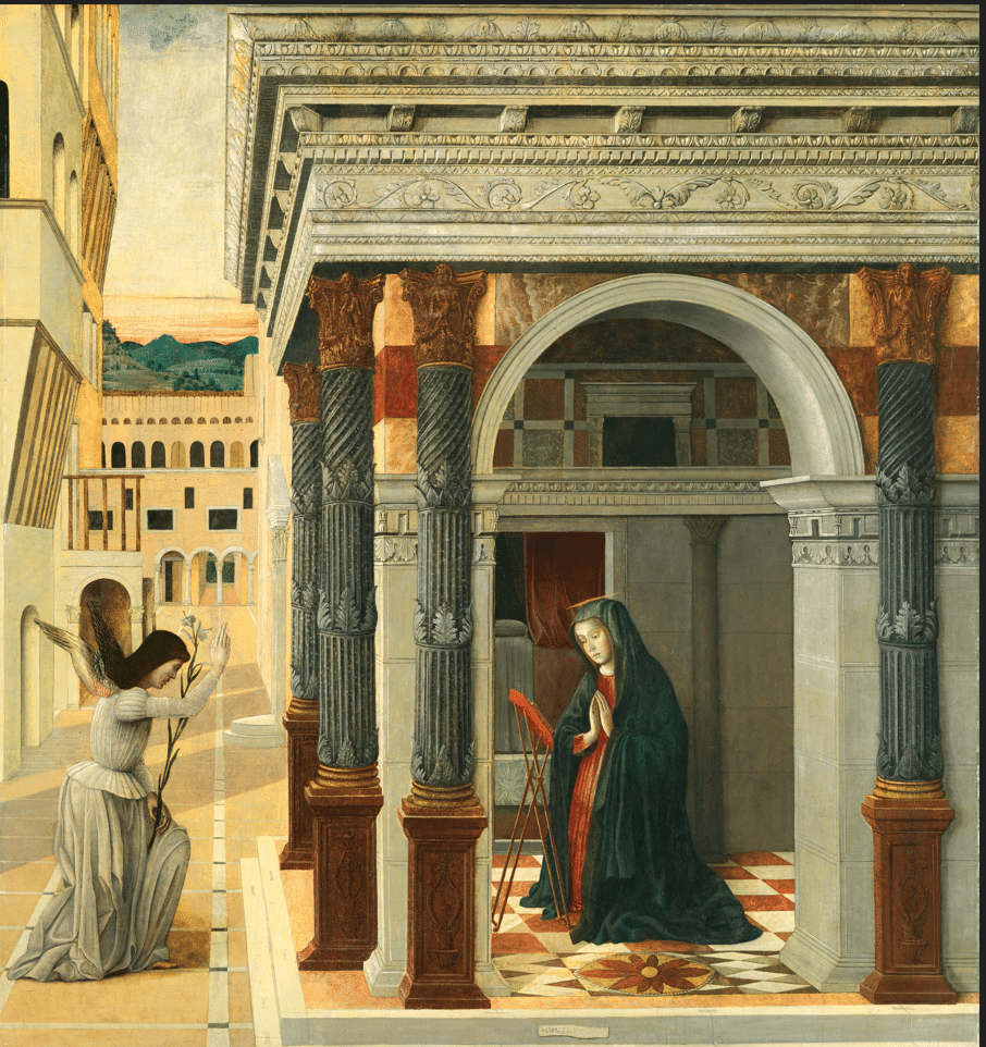 Gentile et Giovanni Bellini. Annonciation. Vers 1475. Détrempe sur panneau. 133 x 124 cm