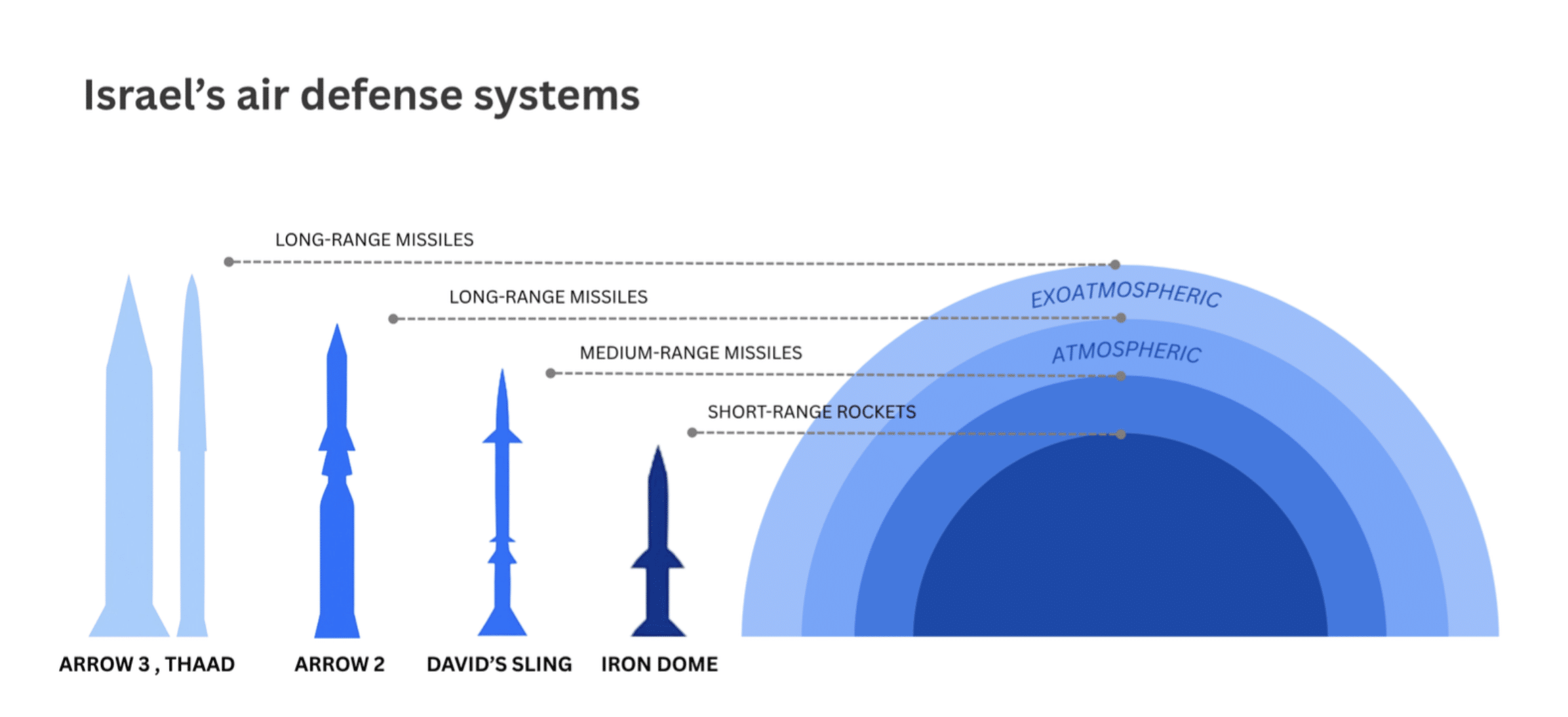 Quelle est la différence entre le Dôme de fer, la Fronde de David, Arrow 2, Arrow 3 et THAAD ?