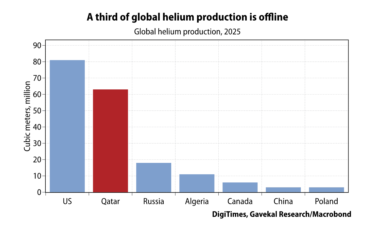 Les pénuries ne devraient pas apparaître avant un mois ou deux. L’industrie mondiale de l’hélium a commencé la guerre avec un excédent de 15 %, et les livraisons en provenance du Golfe ont continué d’arriver en Asie de l’Est pendant trois à quatre semaines après l’arrêt du trafic dans le détroit d’Ormuz. De plus, les fabricants de puces disposent de stocks tampons suffisants ; ceux-ci ont généralement une durée de conservation de 35 à 48 jours avant que l’hélium ne se réchauffe, ne se gazéifie et ne commence à s’échapper.