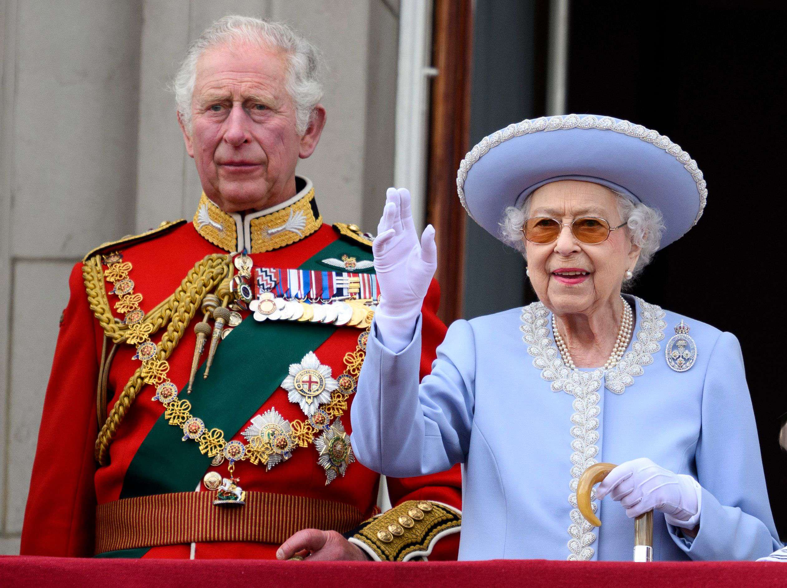 Le Prince Charles et la Reine Elizabeth II à la parade de l’anniversaire de la Reine, à Londres, le 2 Juin 2022