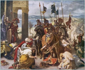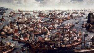 Le Génois Giovanni Giustiniani est l’un des grands capitaines du siège de Constantinople (1453). Sa défense héroïque contre les Turcs a permis de repousser l’assaillant et de sauver la ville. Grièvement blessé, il a dû se réfugier à Chio, ce qui a contribué à la prise de la ville par les Ottomans.