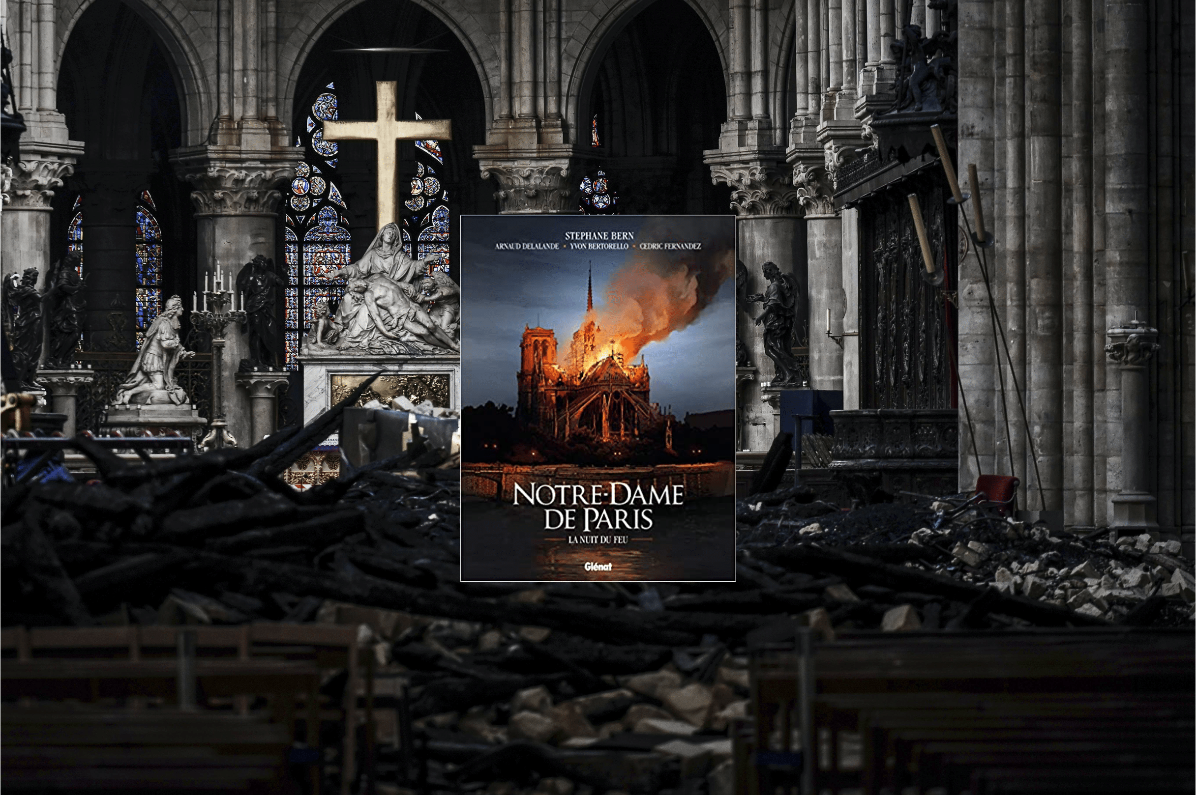 Trois auteurs ont rendu l’intensité de cette nuit terrible dans une bande dessinée qui est autant un rappel des faits qu’un hommage au corps de la brigade des sapeurs-pompiers de Paris qui a engagé près de 650 hommes ce soir-là pour sauver l’édifice. Arnaud Delalande, Yvon Bertorello et Cédric Fernandez, accompagnés de Stéphane Bern, retracent le déroulé de cette nuit d’incendie. Fidèles aux faits et aux événements, les auteurs chroniquent cette nuit de feu où Notre-Dame de Paris aurait pu disparaître. L’album est également entrecoupé de planches consacrées à l’histoire de Notre-Dame et notamment à sa construction et à sa rénovation après les désastres de la Révolution française. On y croise les bâtisseurs du Moyen-Âge et aussi Viollet-le-Duc, qui parachève la cathédrale en y plaçant la flèche, celle-là même dont la chute a sidéré le monde entier.