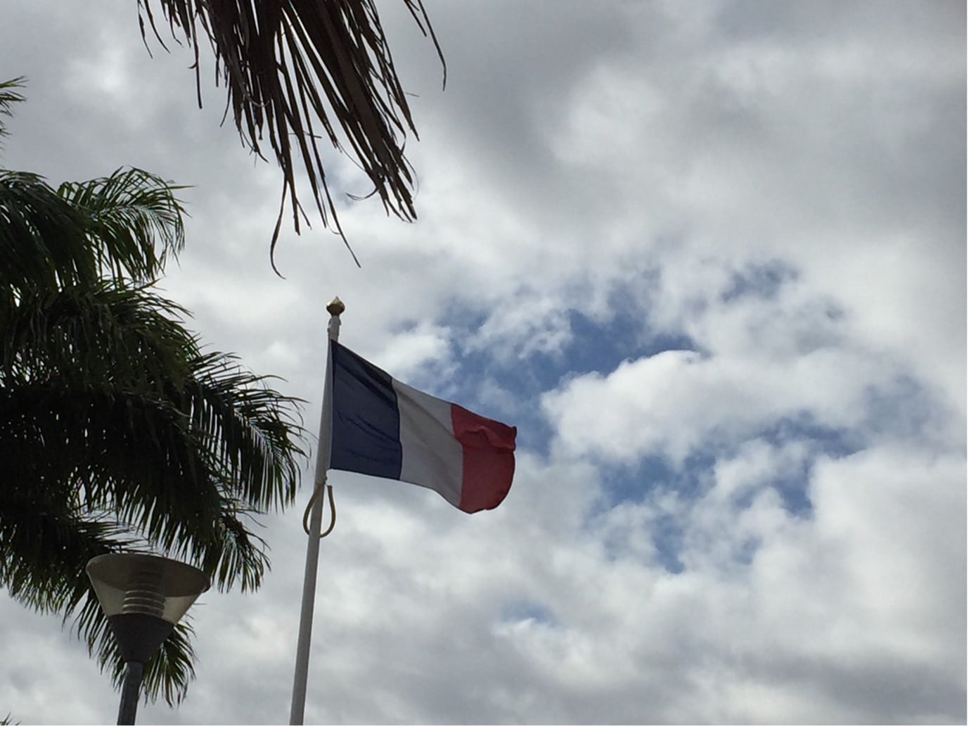 Le drapeau français flotte à Nouville, près de l’ancien bagne de Nouméa (octobre 2019). La Nouvelle-Calédonie ne faisant pas partie de l’Union européenne, le pavillon tricolore n’est pas accompagné de celui aux douze étoiles. (c) ED