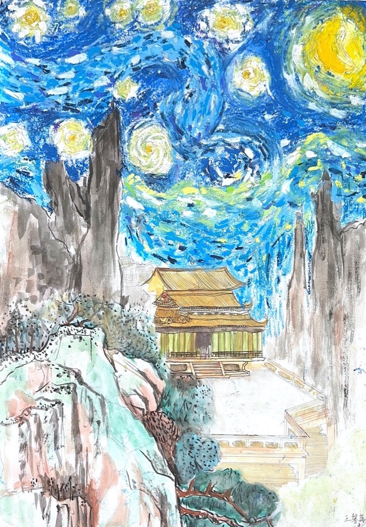 On peut y voir comment l’enfant chinois s’amuse avec la mystérieuse et farceuse perspective, construit une architecture sous-jacente au tableau, maîtrise la vive couleur, intègre des personnages… tout en rendant cependant cela fluide et courbe. Le spectateur aura plaisir à les voir jouer avec Matisse, Van Gogh et compagnie.