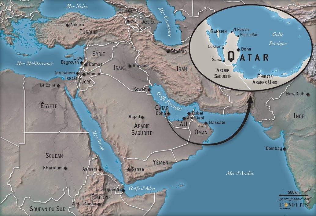 Ses frontières sont bordées au sud-ouest par l’Arabie saoudite et au sud-est par les Émirats arabes unis. Les Saoudiens aimeraient faire de l’Émirat un État vassal, quand les Émiriens souhaiteraient le voir intégrer leur fédération. Mais le sujet qui les divise sans doute le plus porte sur l’organisation islamiste des Frères musulmans que le Qatar soutient. Le géopolitologue Roland Lombardi, spécialiste de la confrérie, explique : « Après les printemps arabes, les dix années de chaos qui ont suivi et la récupération politique qu’ont voulu en faire les Frères musulmans, cette organisation n’a plus le vent en poupe parmi les populations du Moyen-Orient. Elle est désignée clairement comme dangereuse par les pouvoirs en place. Aujourd’hui, elle et ses avatars politiques ou associatifs sont soit interdits, car considérés comme organisations terroristes en Égypte, aux Émirats arabes unis, en Arabie saoudite, en Syrie et au Bahreïn, soit marginalisés et étroitement surveillés comme au Maroc, en Tunisie et en Jordanie. Le Qatar et la Turquie d’Erdogan sont les derniers sanctuaires et les argentiers de la confrérie […]. Les Frères musulmans sont le principal levier d’influence et d’entrisme du Qatar en cas d’un nouveau round éventuel du printemps arabe ! […] De son côté, le prince saoudien Mohamed Bin Salmane demeure conscient que le Qatar et ses protégés fréristes sont les principaux dangers de sa politique régionale. Il n’attend donc qu’une occasion pour tenter de les neutraliser une bonne fois pour toutes, d’une manière ou d’une autre. »