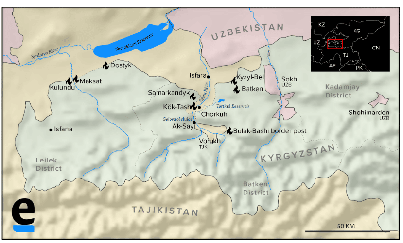 Les services de sécurité tadjiks, connus sous le sigle GKNB, ont affirmé que des troupes de l’unité frontalière de la province kirghize de Batken avaient tiré des mortiers sur leurs troupes postées dans une zone montagneuse isolée et inhabitée au nord de Vorukh. Deux soldats tadjiks ont été tués dans cette agitation, ont déclaré des responsables à Douchanbé.