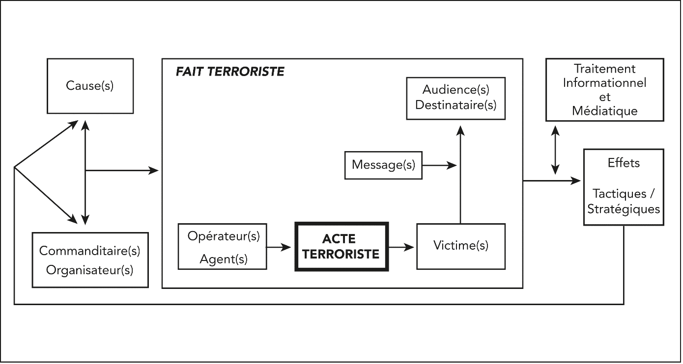 Pour pleinement comprendre l’importance de ce texte afin d’enrichir la réflexion sur le complexe terroriste, il est nécessaire de recourir au schéma suivant qui illustre ses composantes et ses interactions principales.