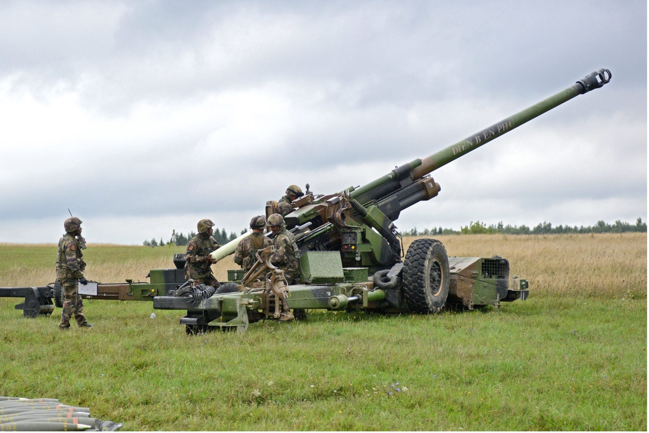 Autre canon de l’artillerie française, la TRF1 n’a pas la particularité d’être montée sur un camion, mais d’être un canon-tracté, et ce par un camion TRM 10 000 qui permet un emport de 56 munitions dont les catégories sont sensiblement les mêmes que pour le Caesar : des obus explosifs, éclairants, fumigène et anti-char. Possédant un motopropulseur, il peut cependant se déplacer seul dans une certaine mesure, à raison de 8 km/h. Prédécesseur du Caesar, ce canon est lui aussi fait pour accueillir du 155m avec une portée de 24 à 30 km selon la munition tirée et une cadence de 6 coups par minute ou 3 coups en 15 secondes en cadence rapide. Entré en service dans les années 1989-1990 aux 11e Régiment d’Artillerie de Marine (11e RAMa) et 68e Régiment d’Artillerie (68e RA), la dislocation du Bloc de l’Est réduit la taille des commandes de l’État français passant de 180 aux 105 livrés jusqu’en 2006. Ayant participé à de nombreux conflits comme la guerre du Golfe, le TRF1 est peu à peu retiré du service au profit du canon Caesar et les 4 derniers TRF1 du 5eRIAOM (5e Régiment Interarmes d’outre-mer) basé à Djibouti sont retirés en avril 2022. L’Ukraine en achète un lot à l’entreprise S2M Equipment, spécialisée dans le rachat de matériel militaire, dont au moins 6 exemplaires ont déjà été livrés.