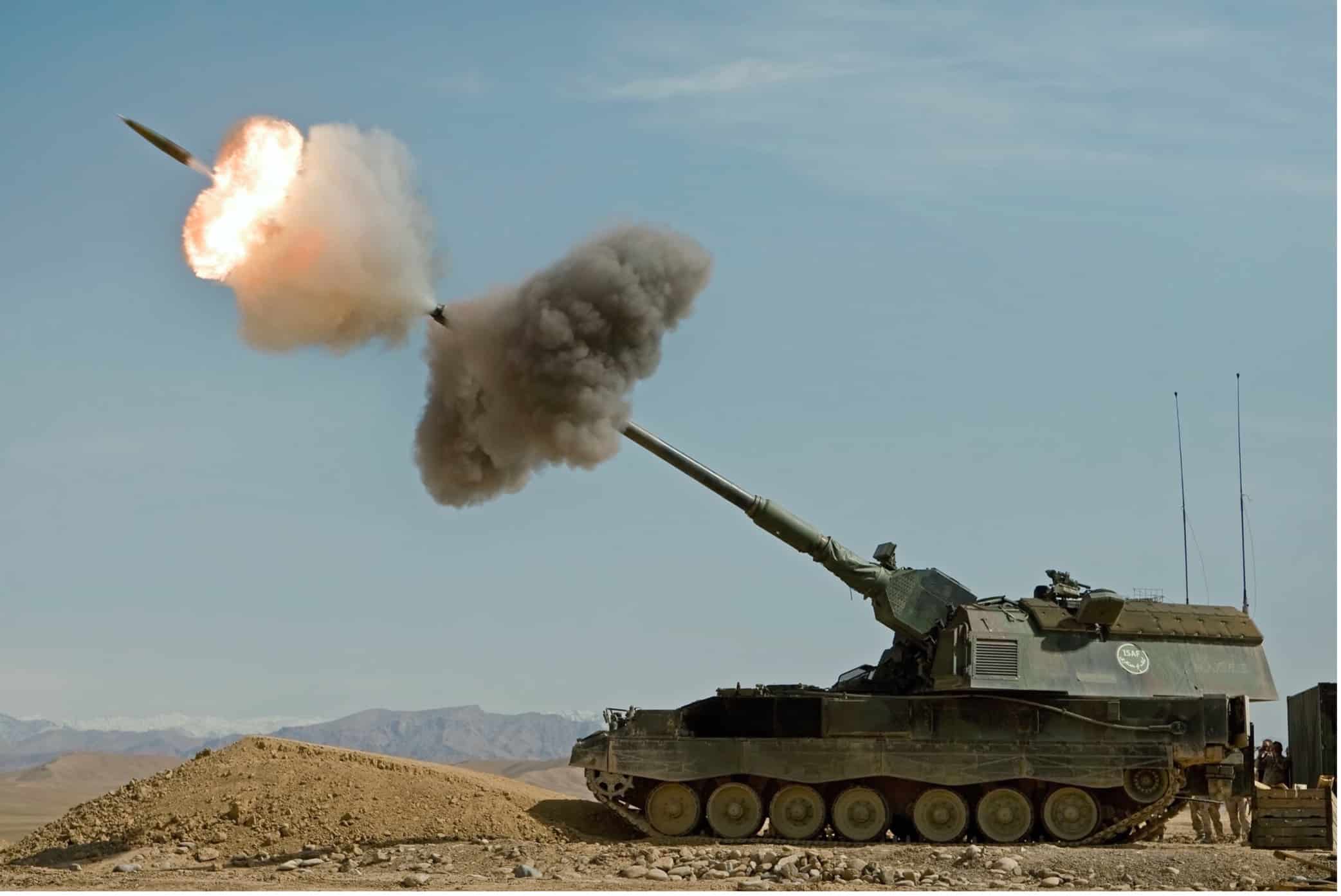 Autre obusier fabriqué par KMW, il est en service depuis 1998 et encore aujourd’hui dans plusieurs armées (Italie, Grèce, Qatar…). Ayant connu comme premier théâtre d’opérations l’Afghanistan, le PzH 2000 est une abréviation de Panzerhaubitze (Obusier blindé) et se caractérise par un canon de 155 mm pour une portée de 30 km pour les obus conventionnels et de 56 km pour les obus roquette avec une cadence importante de 9 à 10 coups par minute (les 3 premiers en 10s) et 20 coups en 2min30. Ce canon est accompagné comme armement secondaire d’une mitrailleuse MG3 de 7,62 ou d’une FN MAG du même calibre. Comme le RCH 155, le PzH 2000 est un canon automoteur avec une vitesse de 65 km/h pour 420 km d’autonomie et un emport de 60 obus possible. En plus des 7 envoyés par l’Allemagne en mai 2022, elle en a vendu également 100 en juillet dernier, les Pays-Bas en ont envoyé 8 et l’Italie un nombre inconnu.